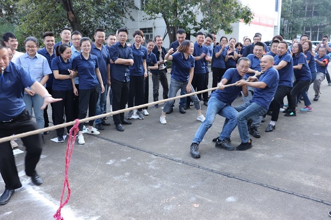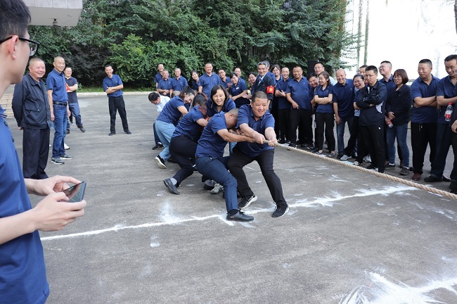 在隊長的帶領(lǐng)下,各隊隊員高呼口號,士氣大振。當比賽的哨聲一響起,隊員們口中高呼“一二、一二”,雙手緊握長繩,拼命往后拉。未參賽的員工自發(fā)組成啦啦隊為比賽隊員加油,吶喊聲此起彼伏,激烈的比賽把活動推到了高潮。比賽過程中,各參賽隊員努力拼搏,尤其在勝負難分時,大家毫不退卻,咬緊牙關(guān),堅持到底。